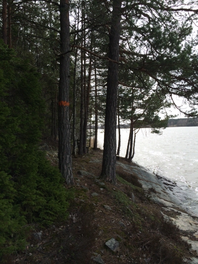 Från nyavverkade vyer med högstubbar för att locka insekter och fåglar som gillar död ved, via spång över gammal sjöbotten och våtmark, till orörda kantzoner där skogen aldrig kommer avverkas. På tidigare slåtterängar reser sig en pelarsal med produktionsbjörk. I slutet av slingan passerar du en bergskulle med mossa, lav och knotiga gamla tallar där skogen aldrig rörts eftersom den varit otillgänglig för häst och vagn.