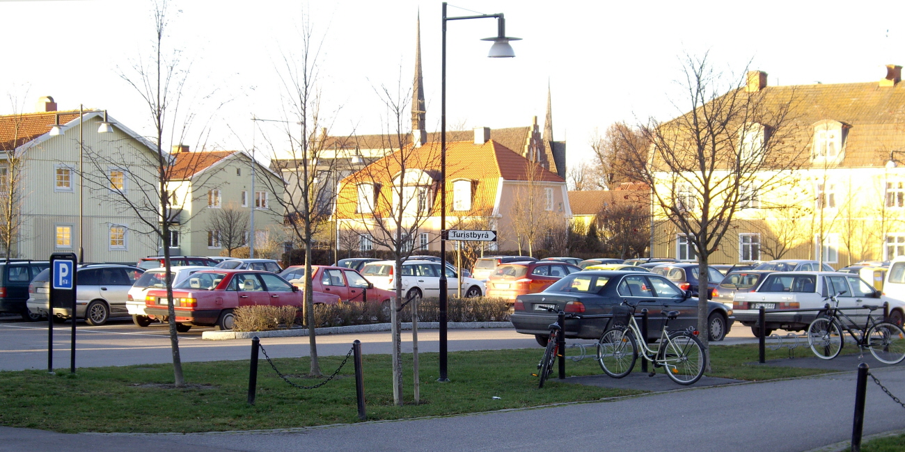 I innerstaden finns det cirka 310 kommunala parkeringsplatser på de större parkeringarna. På och i direkt anslutning till gator finns dessutom ungefär 365 platser. Platserna är avgiftsfria och kan nyttjas året om, under sommartid utökas antalet platser. Parkeringstiderna varierar från 5 minuter till sex dygn. Det finns två parkeringar där du kan stå sex dygn, vid Kanal väst samt långtidsparkeringen vid Stinsen.