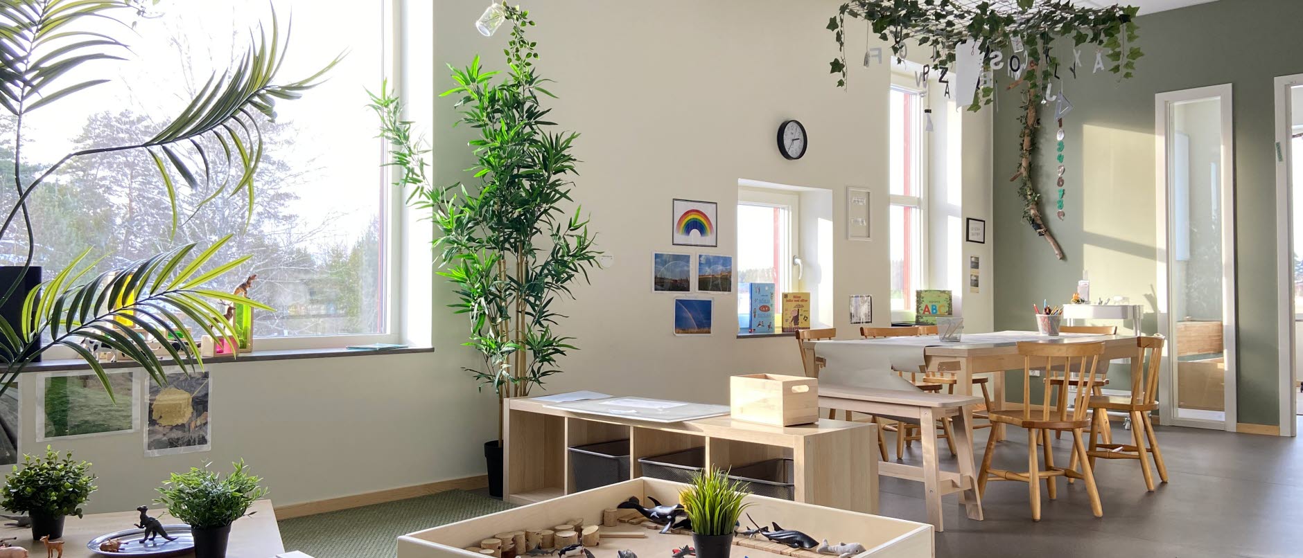 Lärmiljöerna formas tillsammans med barnen och är föränderlig utifrån deras intressen. På förskolan finns också tillagningskök.