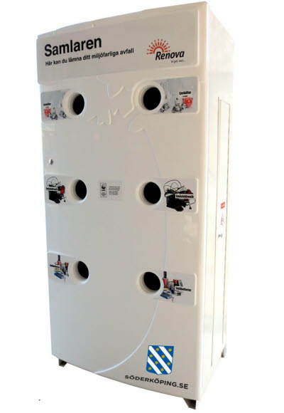 Farligt avfall får inte slängas i soporna, i naturen eller i avloppet utan ska istället lämnas in till återvinningscentralen för säker hantering. Vi har därför placerat ut Samlaren på två olika platser i kommunen för att förenkla hur du säkert kan slänga mindre farligt avfall som exempelvis glödlampor, nagellacksflaskor, småbatterier och små elektronik.