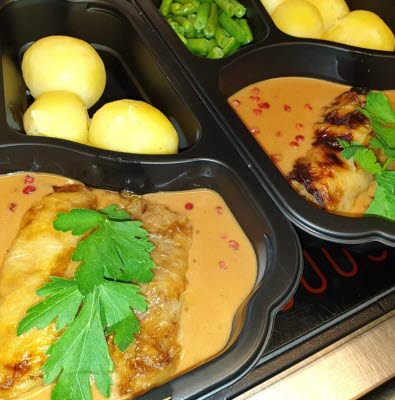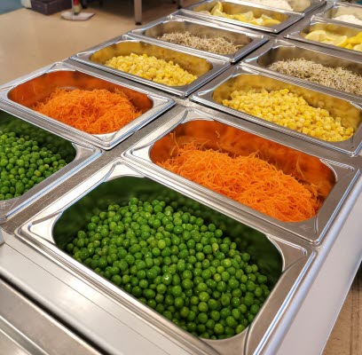 Menyn är omväxlande och planeras utifrån de olika målgrupperna. Måltiderna är näringsberäknade för att säkerställa näringsinnehållet.
