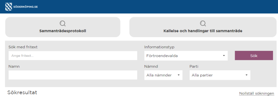 3. I rullistan "Nämnd" väljer du i vilken nämnds protokoll du vill söka.