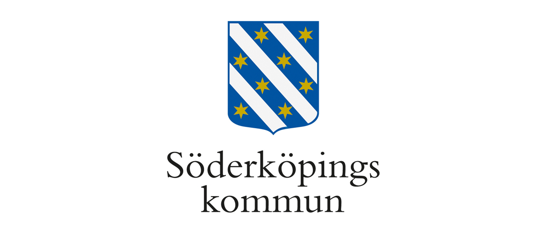 Söderköpings kommuns vapen beskrivs "I blått fält tre balkar av silver, åtföljda av åtta sexuddiga stjärnor av guld ordnade 1.3.3.1"