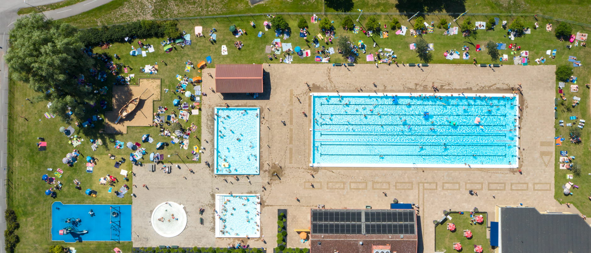 Här finns en 50-metersbassäng, två mindre bassänger varav en är anpassad för simskolan samt en barnpool. Det finns också lekpark med rutschkana, gungor, sandlåda med ett piratskepp samt beachvolleybollplan och stora grönytor för avkoppling samt kiosk.