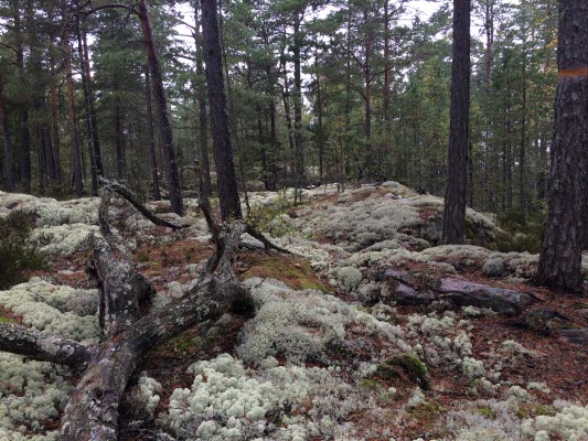 Från nyavverkade vyer med högstubbar för att locka insekter och fåglar som gillar död ved, via spång över gammal sjöbotten och våtmark, till orörda kantzoner där skogen aldrig kommer avverkas. På tidigare slåtterängar reser sig en pelarsal med produktionsbjörk. I slutet av slingan passerar du en bergskulle med mossa, lav och knotiga gamla tallar där skogen aldrig rörts eftersom den varit otillgänglig för häst och vagn.