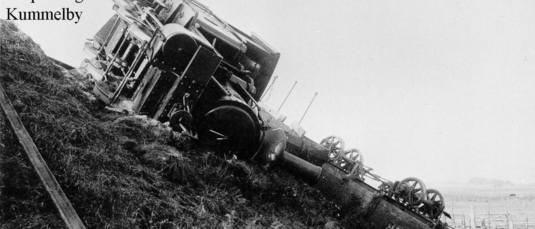 "Lokomotivet framfördes med stor försiktighet över det ställe där rälsutbytningen skett. Det oaktat hade lokomotivet knappast hunnit in på nya rälsen förrän det hoppade ur spåret. Ett 25-tal meter fortsatte lokomotivet bredvid rälsen och störtade sedan utför den 6 meter höga banvallen. Åtta vagnar urspårade och af dessa kastades några omkull, en del utför vallen." Ingen kom till skada, inte ens något av kreaturen som fraktades i godsvagnarna.