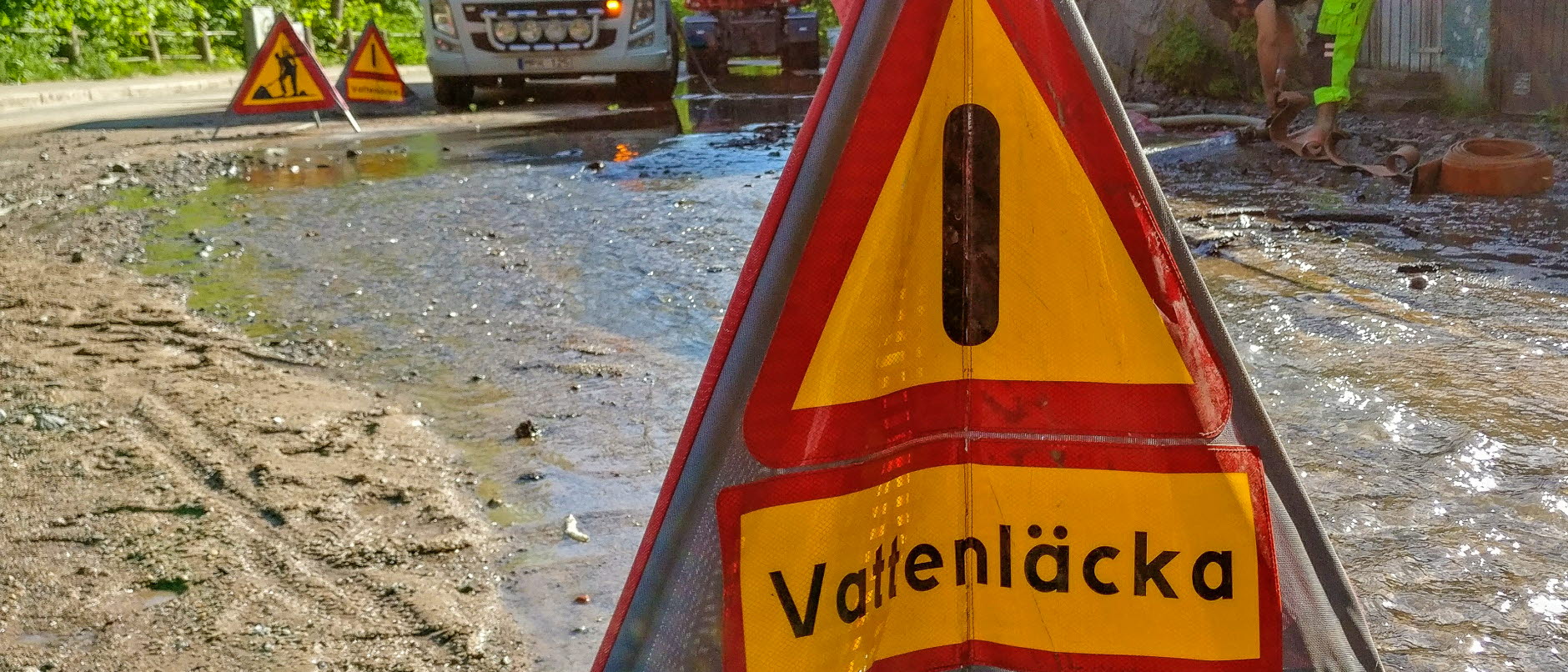 Om du upptäcker en vattenläcka på till exempel en väg eller någon annanstans utomhus är vi tacksamma om du ringer vår VA-jour så vi kan åtgärda läckan så snabbt som möjligt.