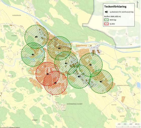 - Det här var första steget i översyn av aktiva ljudsändare, förklarar Desirée. Nu väntar jag in nästa beslut på vår ansökan från MSB gällande att utöka antalet aktiva VMA-sändare. Vår målbild är att vi framöver ska ha täckning i hela tätorten enligt MSB:s riktlinjer om var VMA-sändare bör placeras, avslutar Desirée.